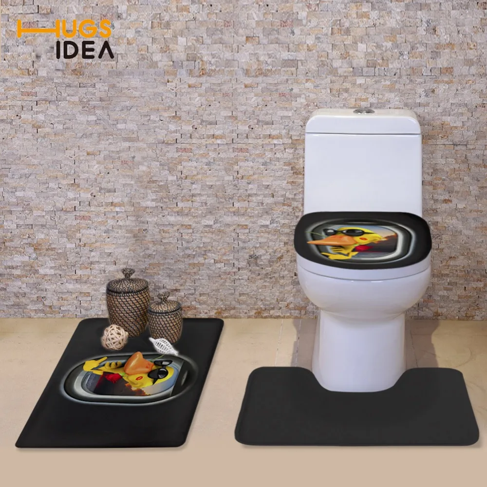 HUGSIDEA Creative 3D Animals Bathroom Toilet Seat Set Cover Bath Floor Mat Holder Closestool Lid Co
