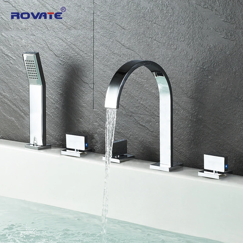 ROVATE Bathroom Bathtub Faucet 2 Mode Water Cold and Hot Mixer CraneBath Faucet with Hand Shower Br