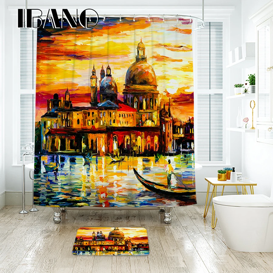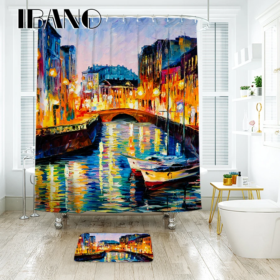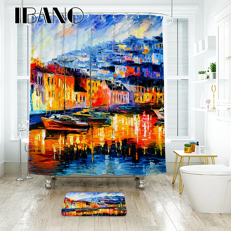 TOP IBANO Scenic Oil Painting Shower Curtain Waterproof Polyester Fabric Bath Curtain For The Bathroom