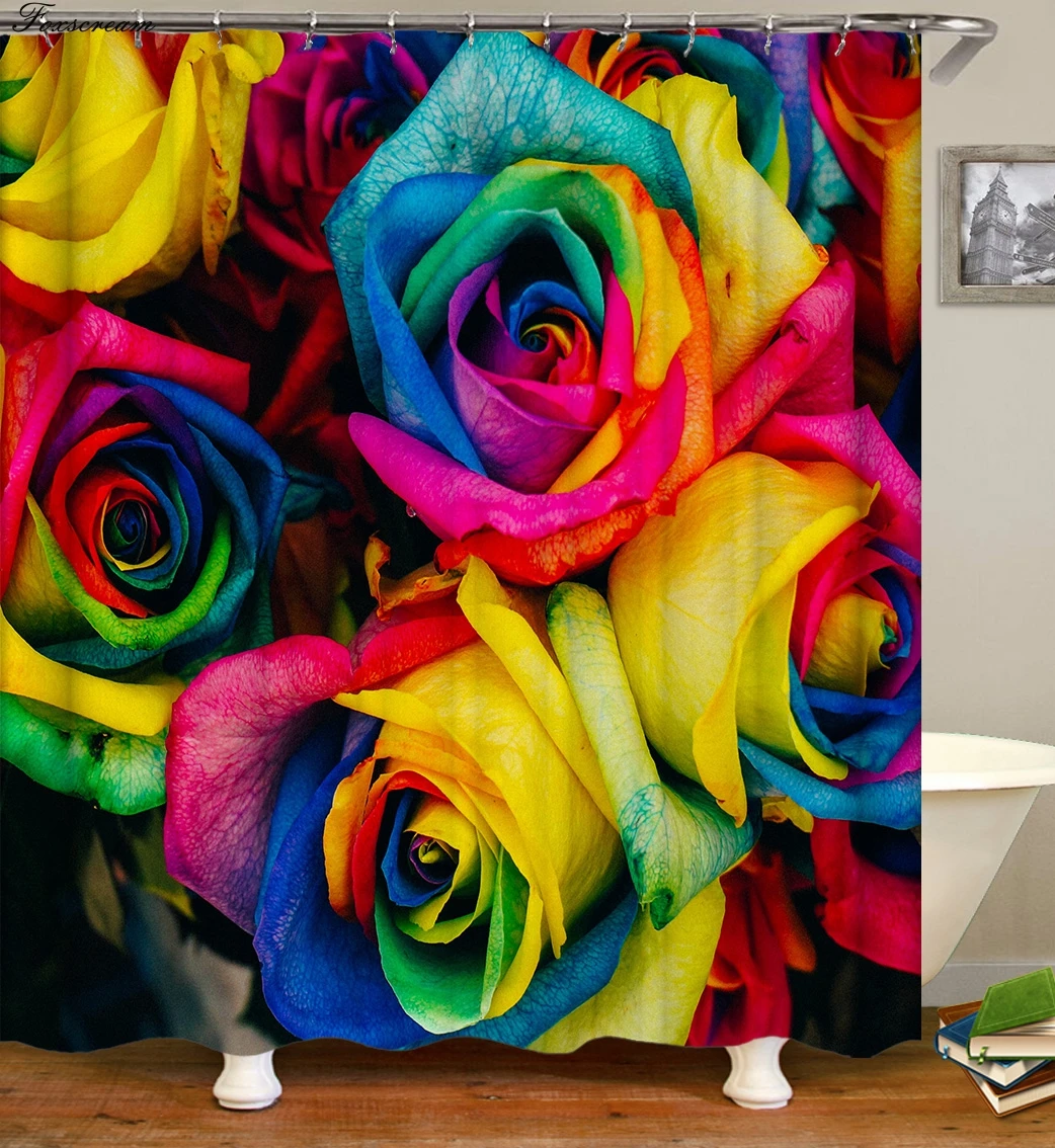Review Floral Bath Shower CurtainsModern Purple Flower Bathroom Curtain Rose Waterproof Polyester Fabric S