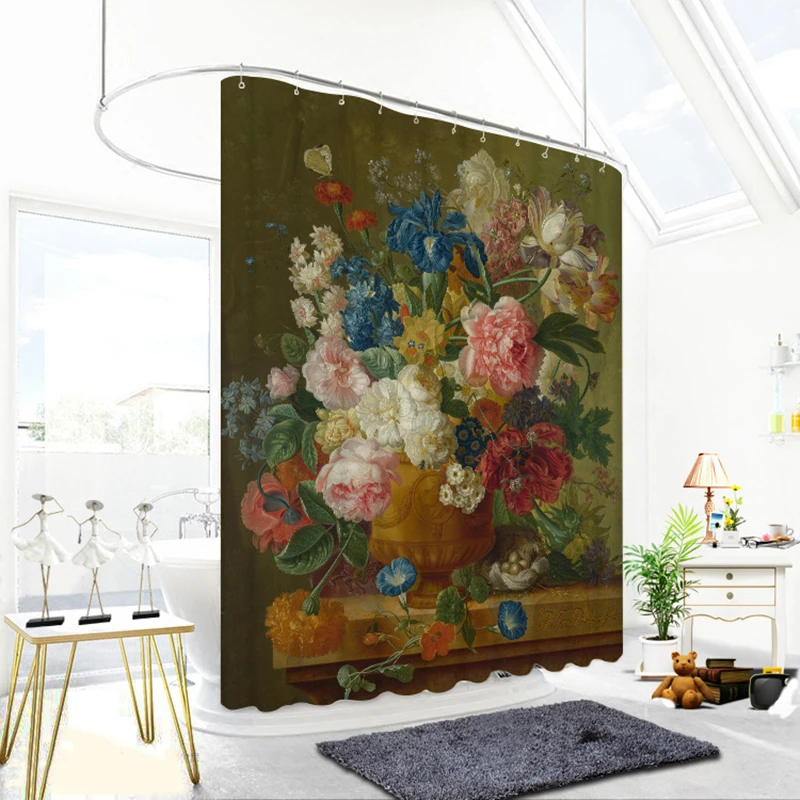 Review 3d Oil Painting Flower and Vase Pattern Shower Curtains Bathroom Curtain Thicken Waterproof Thicken