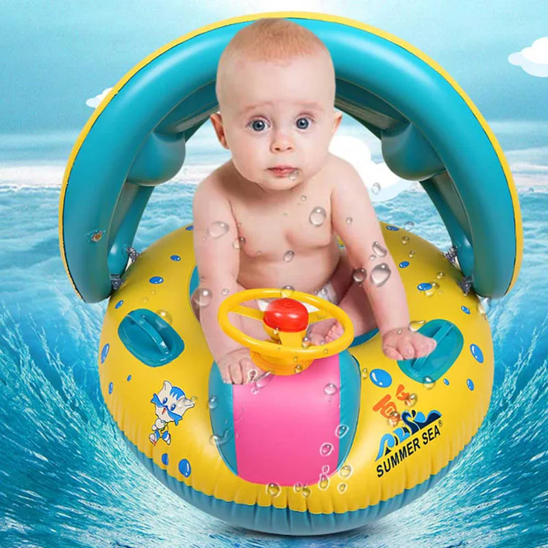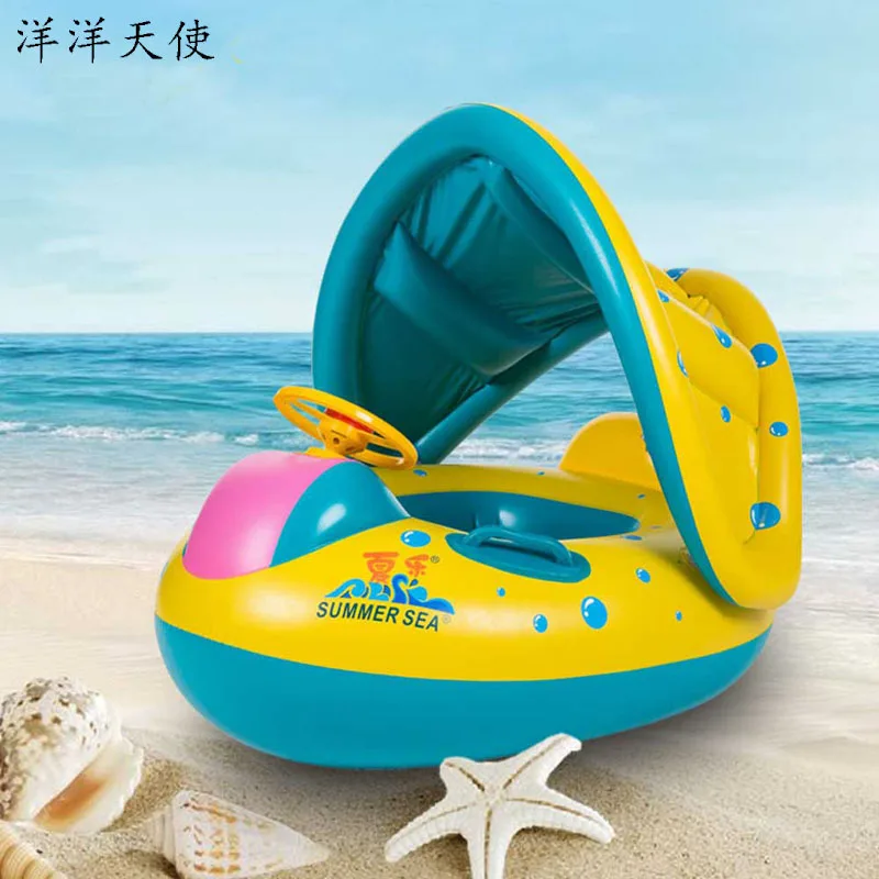 Baby Bath Beach Toys With Awning Car Swimming Ring Floaty Inflatable Summer Outdoor Kids Toys Water