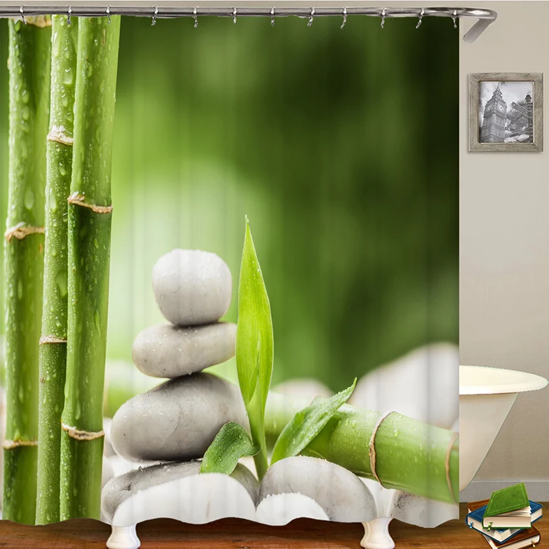 bamboo Crane shower curtain lotus bath curtain shower douchegordijn ringen bathroom curtain