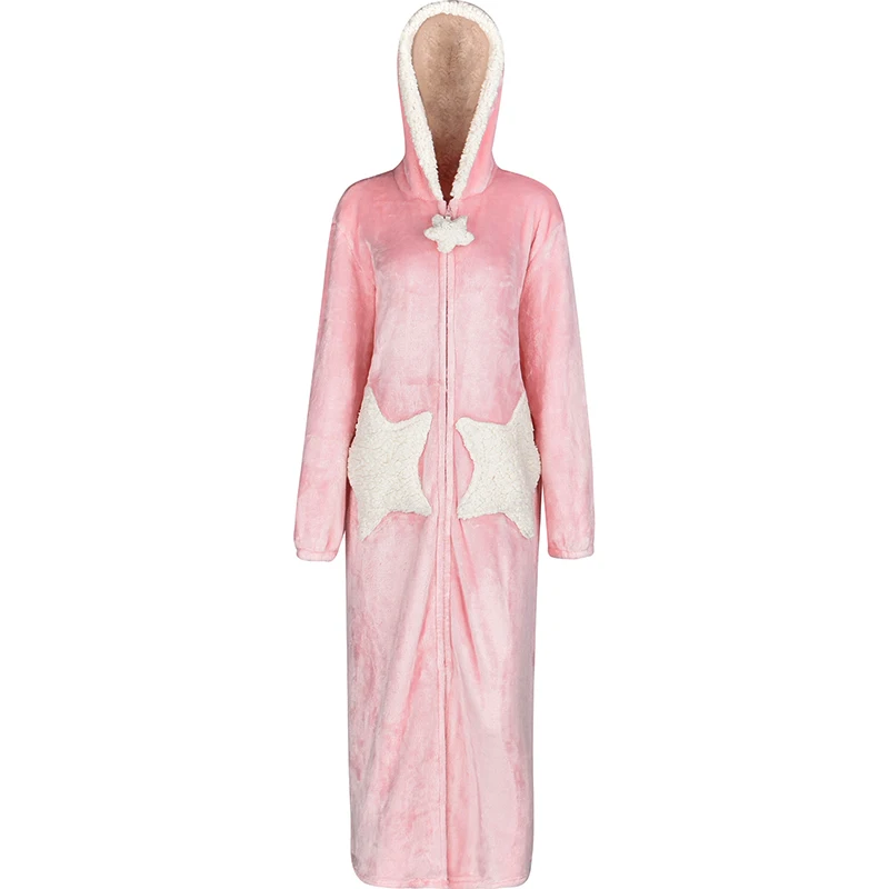 HIGH QUALITY Women Men Winter Plus Size Warm Flannel Bathrobe Star Moon Extra Long Thick Fleece Bath Robe Hooded